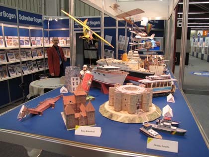 Také my každý rok pravidelně navštěvujeme našeho partnera společnost AUE-VERLAG GMBH, výrobce papírových modelů. Zde jsme viděli část nabídky modelů v sestaveném stavu. Obzvláště fascinující je Eiffelova věž nebo Empire State Building. Modely byly sestaveny s velkou precizností a ihned by se mohly zúčastnit nejedné výstavy.